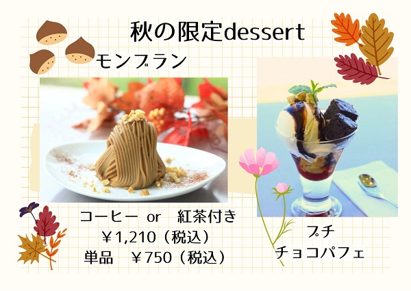 ティールームの9、10月のおすすめメニューをご紹介します。